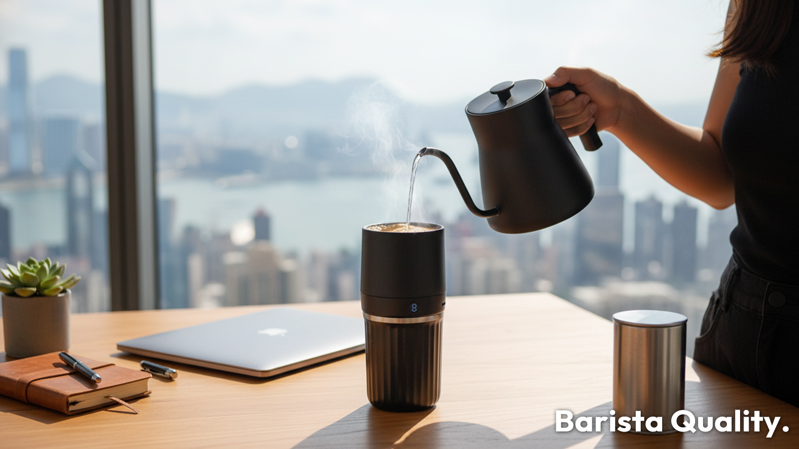 満充電で最大約30杯分のコーヒーを抽出可能。難しい操作は不要で、いつでもどこでもプロの味わいが楽しめます。